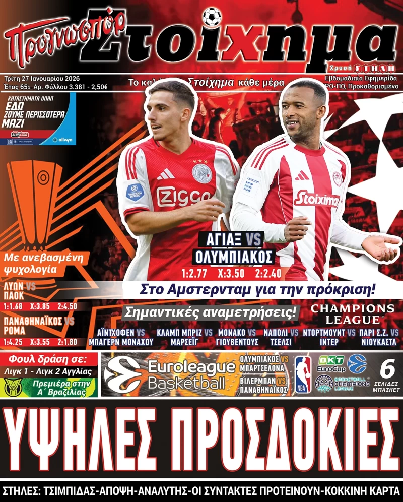 | ΙΣΡ | 20:30 | 542 | 1.85 | Μακάμπι Τελ Αβίβ | 3.45 | Χάποελ Τελ Αβίβ | 3.55 |